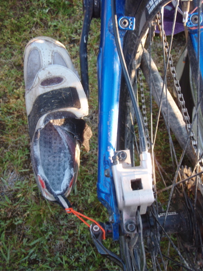 The new Specialized Trivent triathlon shoe and the Avia Avi Bolt. The run course was smooth a babys’ bottom too, so I went with the fastest shoe we have. Also quite a flashy shoe. The Stuffitts, are drying the shoes (and making them smell like Cedar) for tomorrows flight.